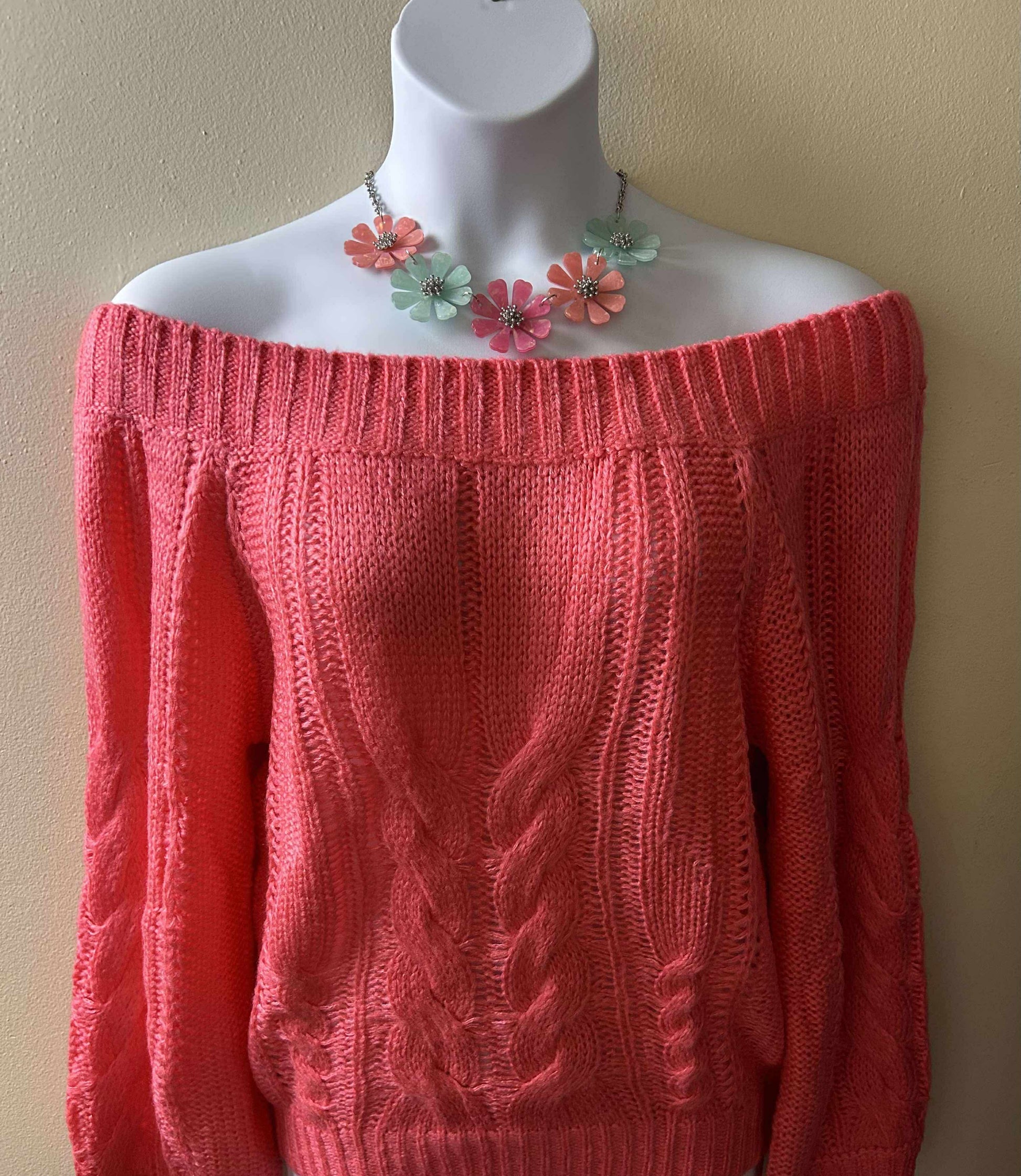 Description: Knit sweater perfect for the cold weather can be worn on the shoulder or off.